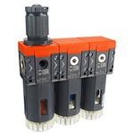 - Sintered filter/fine filter/activated charcoal, with pressure regulator and outlet module (2x air coupling/nipple 9mm).