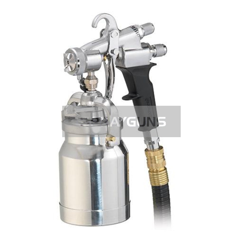 Quick release coupling with integral swivel link for fast connection of the gun to the air hose.