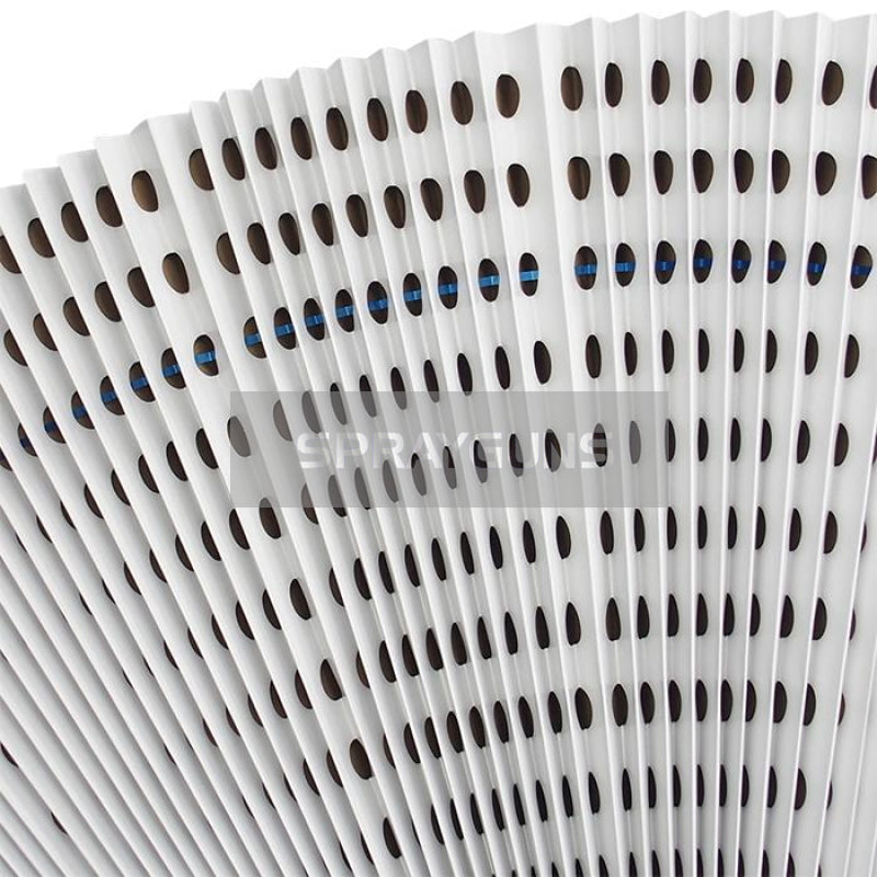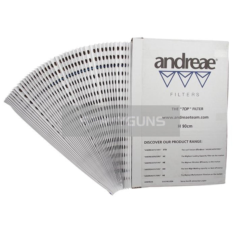 Andreae concertina perforated cardboard paint filters provide lower air flow resistance to maintain high airflow. With a high holding capcity these usually last many times longer than fibreglass filters. Commonly used in spray booths these will capture a wide range of wet particles including any wet solids or liquid particles including high solid paints, oils, stains, glues, fiberglass, lacquers, epoxies, clear coats etc etc.